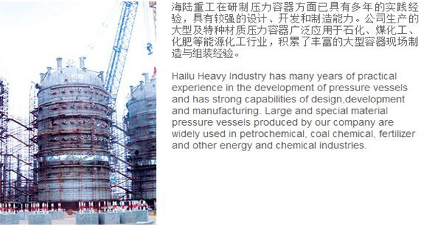 蘇州海陸重工股份有限公司位于江蘇省張家港市開發(fā)區(qū),是國內(nèi)一流的節(jié)能環(huán)保設(shè)備的專業(yè)設(shè)計制造企業(yè),目前并已初步形成鍋爐產(chǎn)品、大型壓力容器、核電設(shè)備、低溫產(chǎn)品、環(huán)保工程共同發(fā)展的業(yè)務(wù)格局。公司創(chuàng)建于1956年,注冊資本51640萬元,占地面積近50萬平米。公司下設(shè)八個控股子公司,一個余熱鍋爐研究所,在瑞士、北京、武漢、南京、上海、杭州、廣州等地設(shè)立分支機構(gòu),擁有雄厚的研發(fā)實力。公司秉承“科技領(lǐng)航、業(yè)界先鋒”的發(fā)展理念,注重研究廢熱、余熱利用和環(huán)境保護相結(jié)合的新技術(shù)研發(fā),自主設(shè)計能力居同行前列;公司承擔過國家863計劃,江蘇省科技成果轉(zhuǎn)化專項資金,榮獲國家科技進步二等獎,產(chǎn)品擁有核心自主知識產(chǎn)權(quán)并取得專利50多項;公司推行國際先進的管理體系標準和認證,擁有 A級鍋爐制造許可證,A1、A2、A3級壓力容器設(shè)計和制造許可證,取得了民用核承壓設(shè)備制造資格許可證、美國機械工程師學會(ASME)“S”、“U”鋼印,通過了ISO9001質(zhì)量體系認證、健康體系認證和14000環(huán)境體系認證;公司設(shè)備先進,裝備精良,專業(yè)嚴謹?shù)闹圃炖砟畲蛟斐銎焚|(zhì)非凡、質(zhì)量一流的“海陸”品牌聲譽。